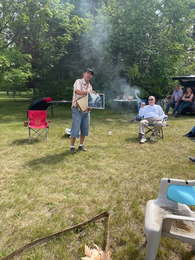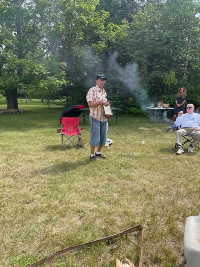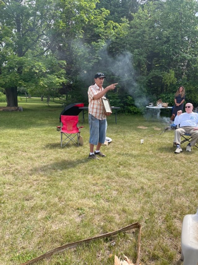 Founding members and friends listened to Board Member Paul DeMain’s riveting history of the Ojibwe burial grounds.